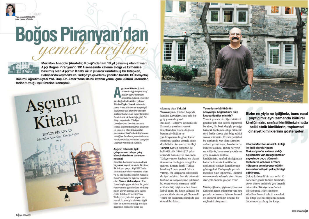 Ermeni mutfağı üzerine Zafer Yenal’la yapılan bu söyleşi, Tetra İletişim tarafından, Boğaziçi Üniversitesi Mezunlar Derneği (BÜMED) için üretilen “Boğaziçi” dergisinin 136. sayısında (Ocak 2009) yer aldı. Ayşegül Zülfikar tarafından gerçekleştirilen söyleşinin fotoğraflarını Teoman Gürzihin çekti. Sayfa tasarımı ve uygulaması Nur Ayman Çakmak tarafından yapıldı.