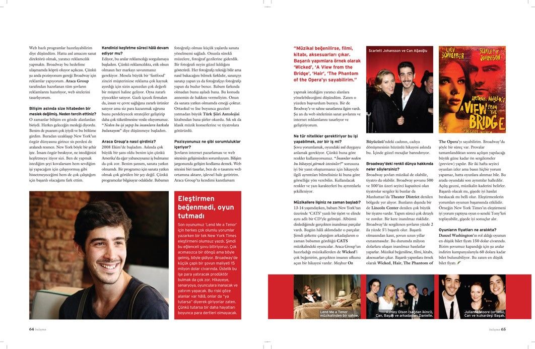 Biraz daha yaratıcılığımı gösterebileceğim bir kariyerdi. Programcı da olacaksam daha yaratıcı ve görselliğin ön planda olduğu bir programcı olmalıydım. Web bazlı programlar hazırlayabilirim diye düşündüm. Hatta asıl amacım sanat direktörü olmak, yaratıcı reklamcılık yapmaktı. Broadway bu hedefime ulaşmamda köprü oluyor açıkcası. Çünkü şu anda pozisyonum gereği Broadway için reklamlar yapıyorum. Araca Group tarafından hazırlanan tüm şovların reklamlarını hazırlıyor, web sitelerini tasarlıyorum.