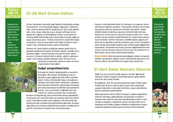 Tetra İletişim, 2011 yılında Doğa Koleji için “Tarım Ders Kitabı” (ISBN: 978-605-4524-76-1) hazırladı. Kitap, Ayfer Erdem Batı, Prof. Dr. Rahim Anşin, Ziraat Yük. Müh. Tolga Özdemir, Peyzaj Mimarı Suzan Saygılı, Ziraat Tek. Merve Tombul ve Vecdi Erbay’dan oluşan bir ekip tarafından kaleme alındı. Kitabın redaksiyonuysa Ayşen Türkmen, Vecdi Erbay ve Ersin Toker tarafından yapıldı. Didem İncesağır ise kitabın grafik tasarım ve uygulamasını gerçekleştirdi. “21-26 Mart: Orman Haftası” adlı konu, kitabın 186. sayfasında yer alıyor.