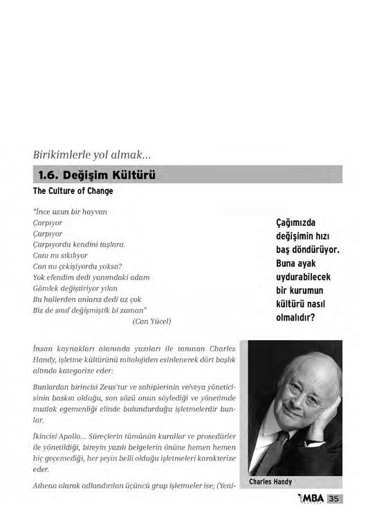 Doğa Koleji’nde uygulanan t-MBA Modeli, öğrencileri geleceğe hazırlıyor. Tetra İletişim, bu model için müfredat kitapları hazırladı. Burada yer verdiğimiz “Değişim Kültürü” adlı konu, “Değişim Mühendisliği ve Pazarlama” (ISBN: 978-605-4101-23-8) adlı kitabın 35. sayfasında yer alıyor. Ersin Toker tarafından kaleme alınan kitabın tasarım ve grafik uygulamasını Didem İncesağır yaptı. Kitaptaki çizimler Ender Özkahraman ve Behzat Taş’a ait.