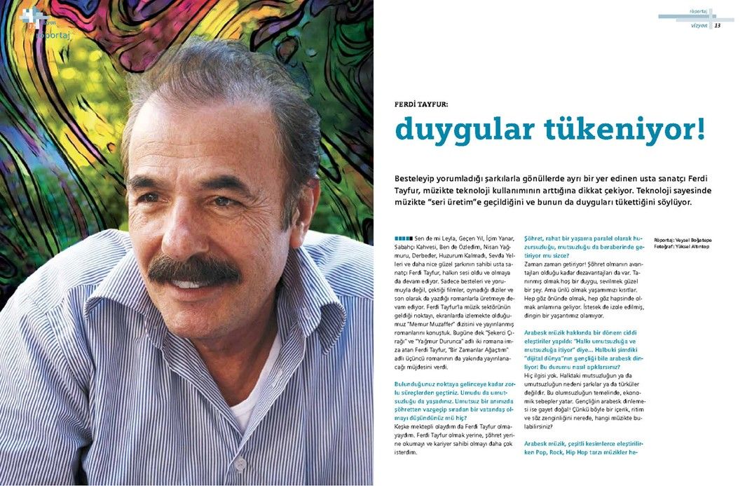 Ferdi Tayfur’la yapılan bu söyleşi, Tetra İletişim tarafından, Türkiye Musiki Eseri Sahipleri Meslek Birliği (MESAM) için üretilen “Mesam Vizyon” dergisinin 10. sayısında (Temmuz – Ağustos 2008) yer aldı. Veysel Boğatepe tarafından gerçekleştirilen söyleşinin fotoğraflarını Yüksel Altıntop çekti. Sayfa tasarımı ve uygulaması Didem İncesağır ve Orçun Peköz tarafından yapıldı.