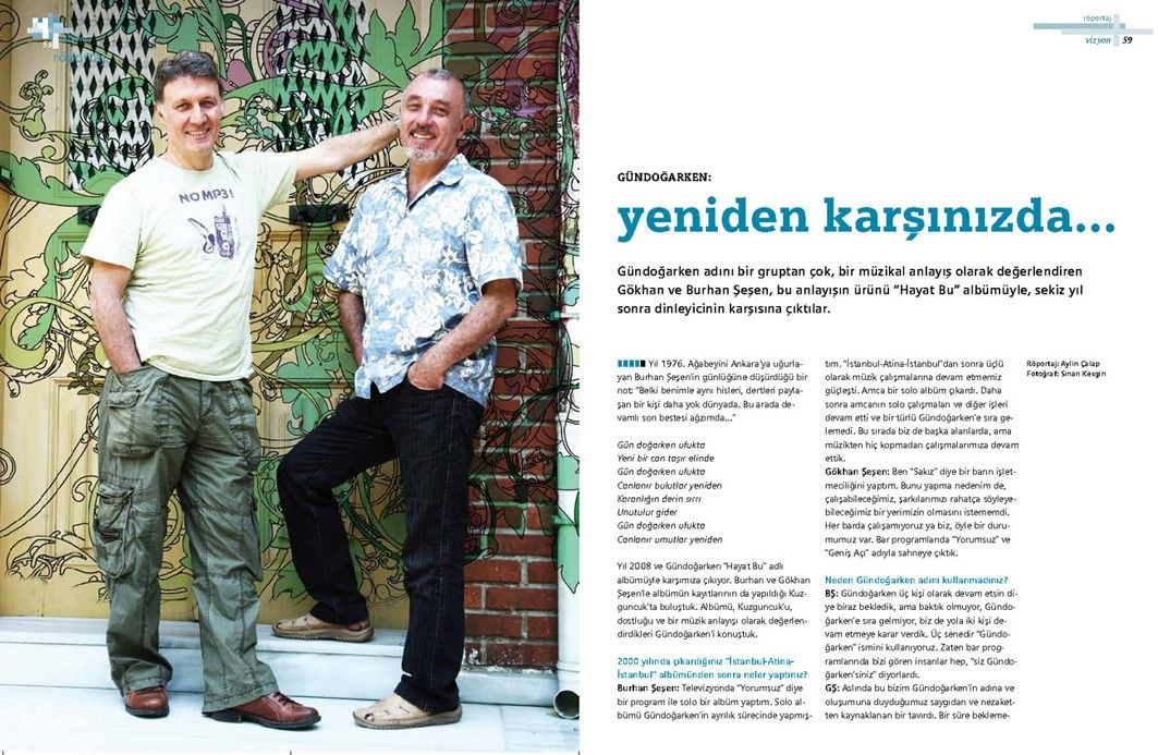 Grup Gündoğarken’le yapılan bu söyleşi, Tetra İletişim tarafından, Türkiye Musiki Eseri Sahipleri Meslek Birliği (MESAM) için üretilen “Mesam Vizyon” dergisinin 10. sayısında (Temmuz – Ağustos 2008) yer aldı. Aylin Çalap tarafından gerçekleştirilen söyleşinin fotoğraflarını Sinan Kesgin çekti. Sayfa tasarımı ve uygulaması Didem İncesağır ve Orçun Peköz tarafından yapıldı.