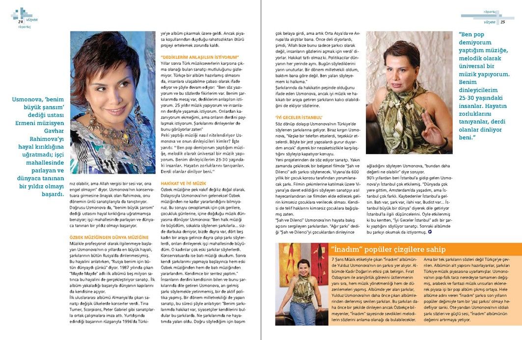 Yulduz Usmanova’yla yapılan bu söyleşi, Tetra İletişim tarafından, Türkiye Musiki Eseri Sahipleri Meslek Birliği (MESAM) için üretilen “Mesam Vizyon” dergisinin 10. sayısında (Temmuz – Ağustos 2008) yer aldı. Vecdi Erbay tarafından gerçekleştirilen söyleşinin fotoğraflarını Teoman Gürzihin çekti. Sayfa tasarımı ve uygulaması Didem İncesağır ve Orçun Peköz tarafından yapıldı.