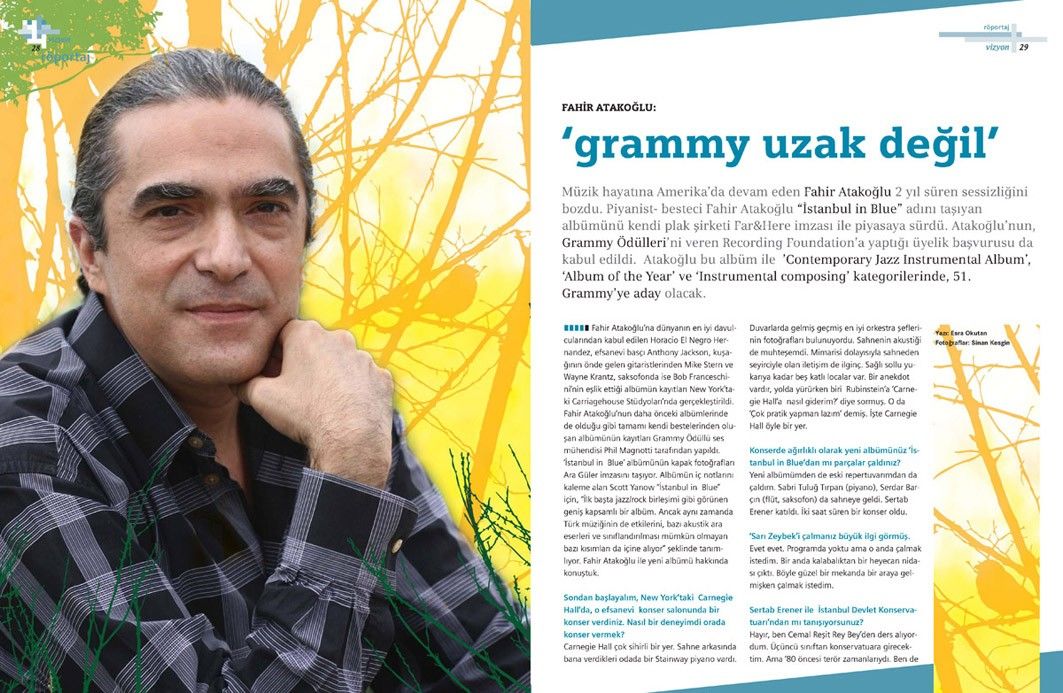 ‘İstanbul in Blue’ albümünün kapak fotoğrafları Ara Güler imzasını taşıyor. Albümün iç notlarını kaleme alan Scott Yanow “istanbul in Blue” için, “ilk başta jazz/rock birleşimi gibi görünen geniş kapsamlı bir albüm. Ancak aynı zamanda Türk müziğinin de etkilerini, bazı akustik ara eserleri ve sınıflandırılması mümkün olmayan bazı kısımları da içine alıyor” şeklinde tanımlıyor. Fahir Atakoğlu ile yeni albümü hakkında konuştuk.