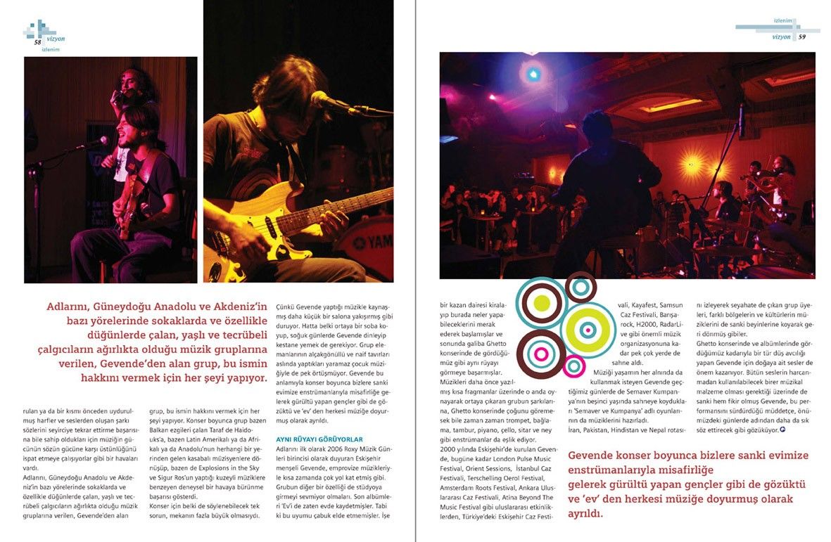 Gevende hakkındaki bu yazı, Tetra İletişim tarafından, Türkiye Musiki Eseri Sahipleri Meslek Birliği (MESAM) için üretilen “Mesam Vizyon” dergisinin 7. sayısında (Aralık 2007 – Ocak 2008) yer aldı. Özgür Çakır tarafından kaleme alınan yazının fotoğraflarını Sinan Kesgin çekti. Sayfa tasarımı ve uygulaması Didem İncesağır tarafından yapıldı.