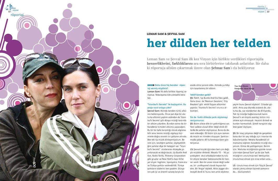 Leman Sam ve Şevval Sam’la yapılan bu söyleşi, Tetra İletişim tarafından, Türkiye Musiki Eseri Sahipleri Meslek Birliği (MESAM) için üretilen “Mesam Vizyon” dergisinin 7. sayısında (Aralık 2007 – Ocak 2008) yer aldı. Esra Okutan tarafından gerçekleştirilen söyleşinin fotoğraflarını Sinan Kesgin çekti. Sayfa tasarımı ve uygulaması Didem İncesağır tarafından yapıldı.