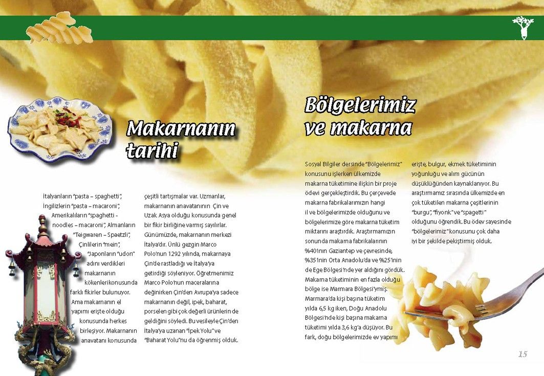Sosyal Bilgiler dersinde “Bölgelerimiz” konusunu işlerken ülkemizde makarna tüketimine ilişkin bir proje ödevi gerçekleştirdik. Bu çerçevede makarna fabrikalarımızın hangi il ve bölgelerimizde olduğunu ve bölgelerimize göre makarna tüketim miktarını araştırdık. Araştırmamızın sonunda makarna fabrikalarının %40’ının Gaziantep ve çevresinde, %35’inin Orta Anadolu’da ve %25’inin de Ege Bölgesi’nde yer aldığını gördük. Makarna tüketiminin en fazla olduğu bölge ise Marmara Bölgesi’ymiş. Marmara’da kişi başına tüketim yılda 6,5 kg iken, Doğu Anadolu Bölgesi’nde kişi başına makarna tüketimi yılda 3,6 kg’a düşüyor. Bu fark, doğu bölgelerimizde ev yapımı erişte, bulgur, ekmek tüketiminin yoğunluğu ve alım gücünün düşüklüğünden kaynaklanıyor. Bu araştırmamız sırasında ülkemizde en çok tüketilen makarna çeşitlerinin “burgu”, “fiyonk” ve “spagetti” olduğunu öğrendik. Bu ödev sayesinde “bölgelerimiz” konusunu çok daha iyi bir şekilde pekiştirmiş olduk.
