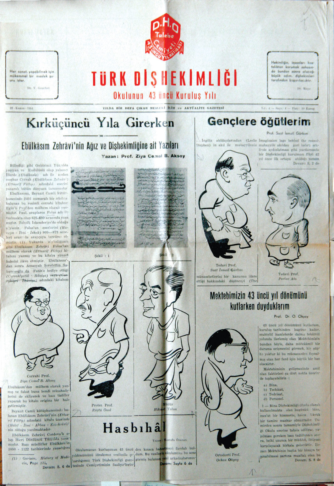 Okulun kuruluş günü, Prof. Ziya Cemal Büyükaksoy tarafından, Tıp Fakültesi Mualimler Meclisi’nin zabıt defterinde bulunan, Dişçi Mektebi bütçesinin Maarif Nezareti’ne gönderildiğine dair kayıt esas alınarak 22 Kasım 1908 olarak kabul edilmiştir. 40. yıldönümü 22 Kasım 1948 günü Marmara Talebe Lokali’nde kutlandı. Gece Diştababeti Okulu Talebe Cemiyeti’nin Belediye Gazinosu’ndaki yemeğine Üniversite Rektörü de katıldı ve cemiyet her yıl 22 Kasım’da kuruluş yılı anısına bir gazete çıkarmaya başladı.