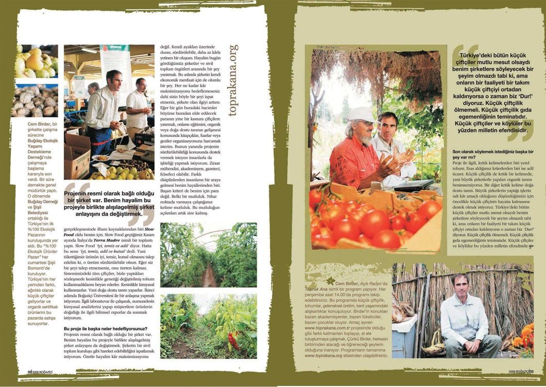 Doğal ürünlere ilişkin bu söyleşi, Tetra İletişim tarafından, Boğaziçi Üniversitesi Mezunlar Derneği (BÜMED) için üretilen “Boğaziçi” dergisinin 136. sayısında (Ocak 2009) yer aldı. Sabanur Yılmaz tarafından gerçekleştirilen söyleşinin fotoğraflarını Teoman Gürzihin çekti. Sayfa tasarımı ve uygulaması Nur Ayman Çakmak tarafından yapıldı.