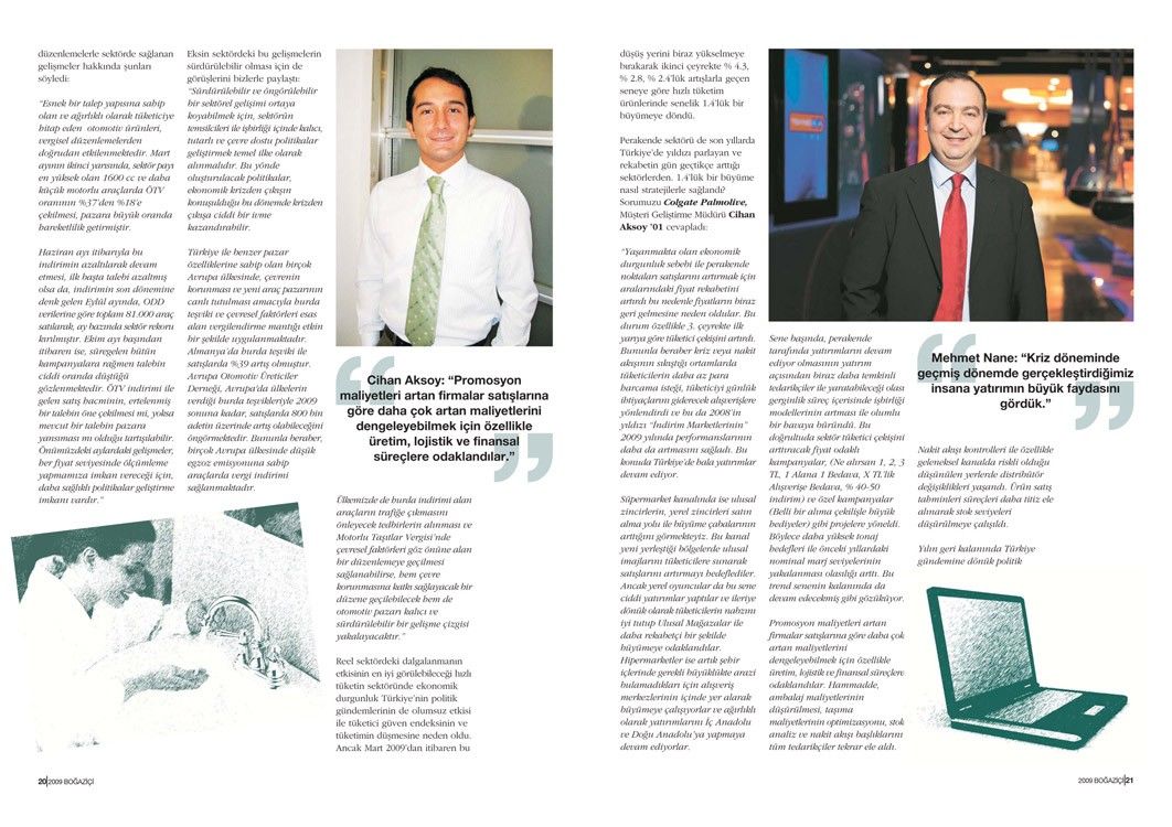 “Yaşanmakta olan ekonomik durgunluk sebebi ile perakende noktaları satışlarını artırmak için aralarındaki fiyat rekabetini artırdı bu nedenle fiyatların biraz geri gelmesine neden oldular. Bu durum özellikle 3. çeyrekte ilk yarıya göre tüketici çekişini artırdı. Bununla beraber kriz veya nakit akışının sıkıştığı ortamlarda tüketicilerin daha az para harcama isteği, tüketiciyi günlük ihtiyaçlarını giderecek alışverişlere yönlendirdi ve bu da 2008’in yıldızı “İndirim Marketlerinin” 2009 yılında performanslarının daha da artmasını sağladı. Bu konuda Türkiye’de hala yatırımlar devam ediyor.