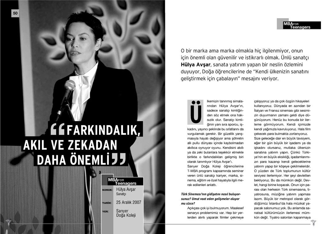 Sarıyer Doğa Koleji öğrencilerine T-MBA programı kapsamında seminer veren ünlü sanatçı kariyer, marka, sinema, eğitim ve özel hayatıyla ilgili merak edilenleri anlattı.