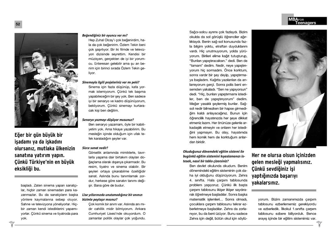 Doğa Koleji’nde uygulanan t-MBA Modeli, öğrencileri geleceğe hazırlıyor. Bu çerçevede öğrenciler, mesleklerinde başarıya ulaşmış insanlarla bir araya gelip söyleşiyor. Bu toplantı ve buluşmalar, Tetra İletişim tarafından izlenip kayıt altına alınıyor. Yıl sonunda tüm konular, bir kitapta toplanıyor. Halit Kıvanç’la Doğa öğrencilerinin buluşması 2007 -2008 eğitim döneminde gerçekleşti. Buluşma, Cihan Aldık tarafından izlendi ve fotoğraflandı. Konunun ve kitabın editörlüğünü Türkşan Karatekin yaptı. Kitap tasarımı ve uygulaması ise Didem İncesağır’a ait.