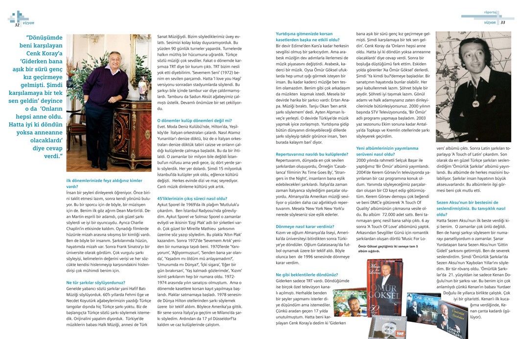Mahsun Kırmızıgül’le yapılan bu söyleşi, Tetra İletişim tarafından, Türkiye Musiki Eseri Sahipleri Meslek Birliği (MESAM) için üretilen “Mesam Vizyon” dergisinin 8. sayısında (Mart – Nisan 2008) yer aldı. Esra Okutan tarafından gerçekleştirilen söyleşinin fotoğraflarını Teoman Gürzihin çekti. Sayfa tasarımı ve uygulaması Didem İncesağır tarafından yapıldı.