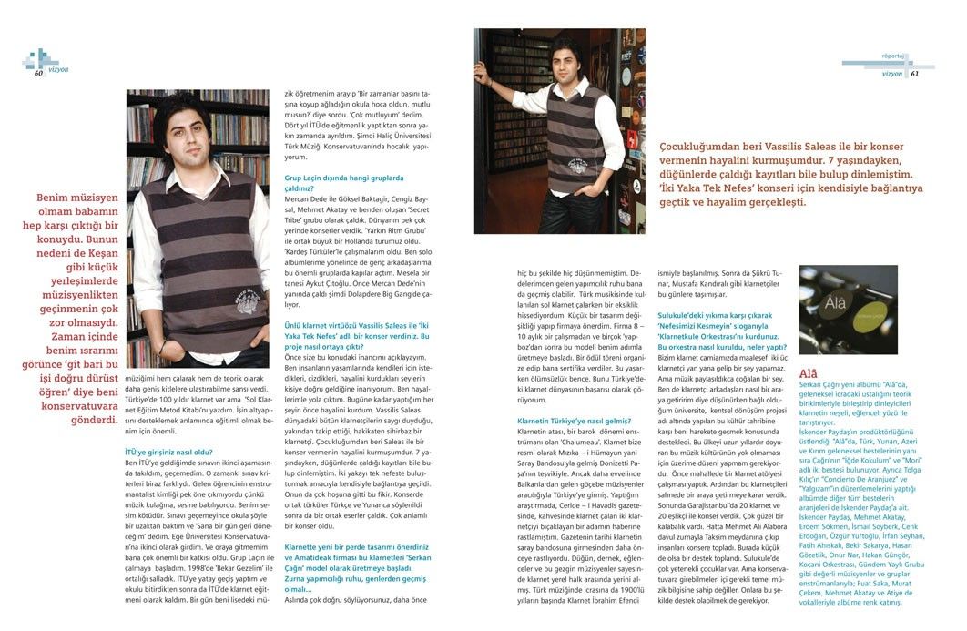 Önce size bu konudaki inancımı açıklayayım. Ben insanların yaşamlarında kendileri için istedikleri, çizdikleri, hayalini kurdukları şeylerin kişiye doğru geldiğine inanıyorum. Ben hayallerimle yola çıktım. Bugüne kadar yaptığım her şeyin önce hayalini kurdum. Vassilis Saleas dünyadaki bütün klarnetçilerin saygı duyduğu, yakından takip ettiği, hakikaten sihirbaz bir klarnetçi. Çocukluğumdan beri Saleas ile bir konser vermenin hayalini kurmuşumdur. 7 yaşındayken, düğünlerde çaldığı kayıtları bile bulup dinlemiştim. İki yakayı tek nefeste buluşturmak amacıyla kendisiyle bağlantıya geçildi. Onun da çok hoşuna gitti bu fikir. Konserde ortak türküler Türkçe ve Yunanca söylenildi sonra da biz ortak eserler çaldık. Çok anlamlı bir konser oldu.