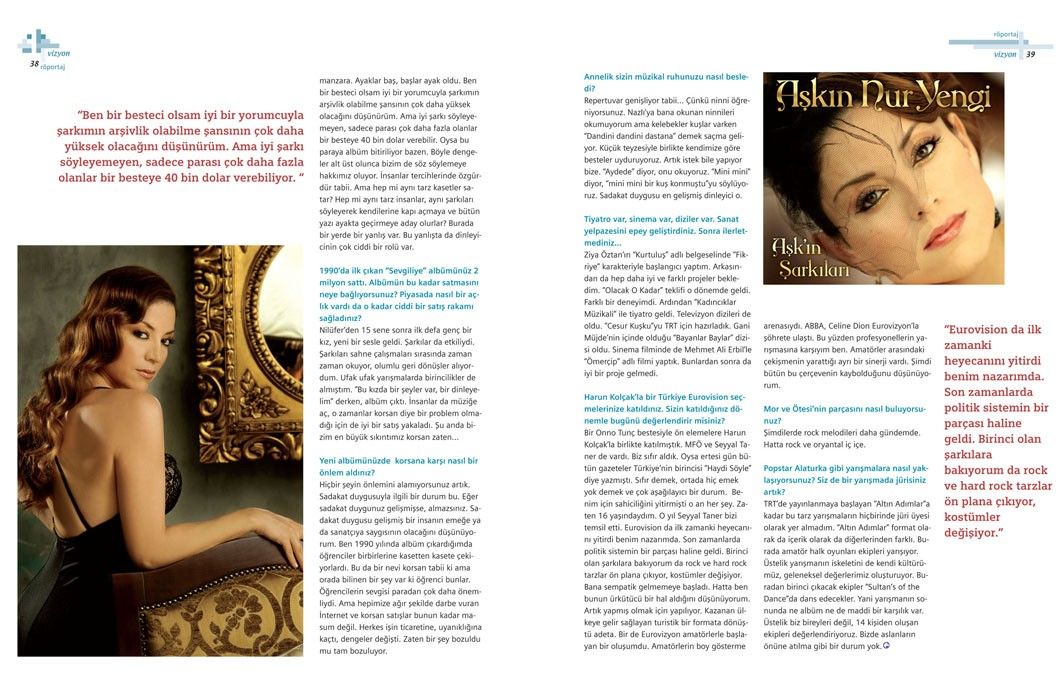 Aşkın Nur Yengi’yle yapılan bu söyleşi, Tetra İletişim tarafından, Türkiye Musiki Eseri Sahipleri Meslek Birliği (MESAM) için üretilen “Mesam Vizyon” dergisinin 9. sayısında (Mayıs – Haziran 2008) yer aldı. Türkşan Karatekin tarafından gerçekleştirilen söyleşinin fotoğraflarını Teoman Gürzihin çekti. Diğer fotoğraflar, Aşkın Nur Yengi’nin arşivinden edinildi. Sayfa tasarımı ve uygulaması Didem İncesağır ve Orçun Peköz tarafından yapıldı.