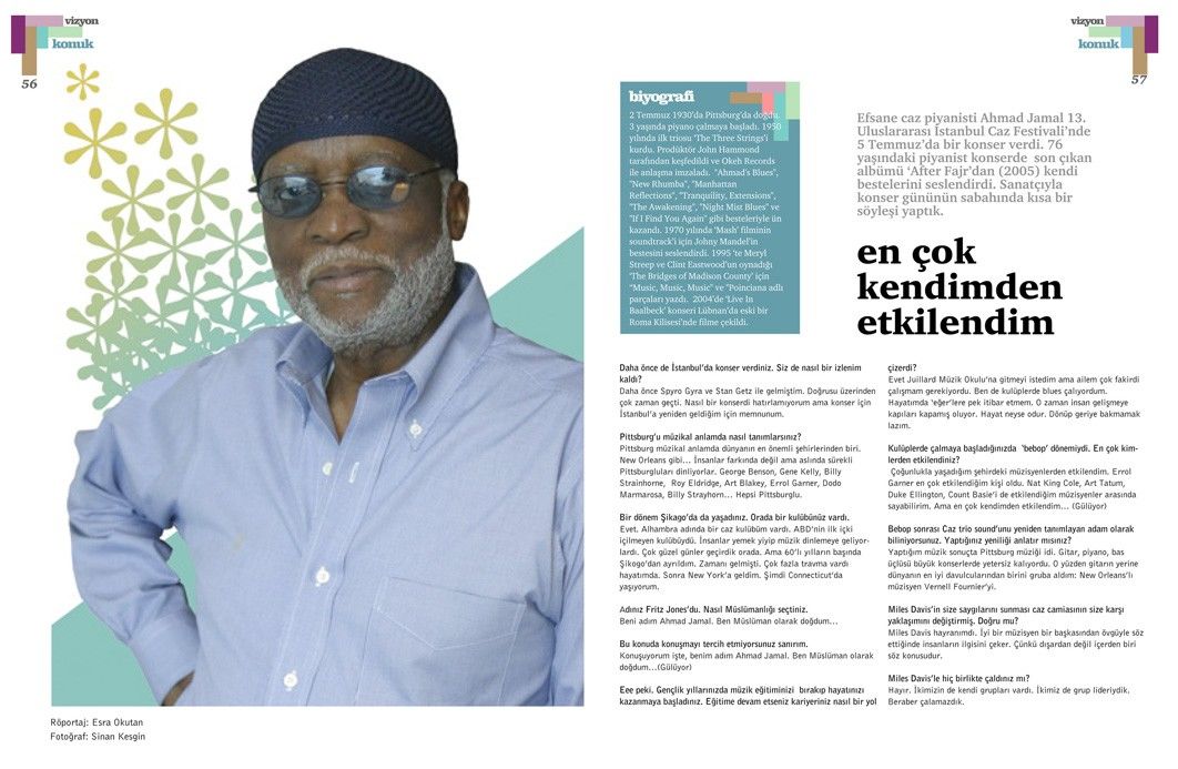 Ahmad Jamal’la yapılan bu söyleşi, Tetra İletişim tarafından, Türkiye Musiki Eseri Sahipleri Meslek Birliği (MESAM) için üretilen “Mesam Vizyon” dergisinin 1. sayısında (Ağustos – Eylül 2006) yer aldı. Esra Okutan tarafından gerçekleştirilen söyleşinin fotoğraflarını Sinan Kesgin çekti. Sayfa tasarımı ve uygulaması Yavuz Gündüz ve Murat Ateş tarafından yapıldı.