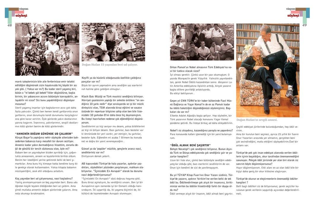 Doğan Hızlan’la yapılan bu söyleşi, Tetra İletişim tarafından, Türkiye Musiki Eseri Sahipleri Meslek Birliği (MESAM) için üretilen “Mesam Vizyon” dergisinin 3. sayısında (Aralık – Ocak 2007) yer aldı. Reyhan Yıldız tarafından gerçekleştirilen söyleşideki fotoğraflar, Doğan Hızlan’ın arşivinden edinildi. Sayfa tasarımı ve uygulaması Didem İncesağır tarafından yapıldı.