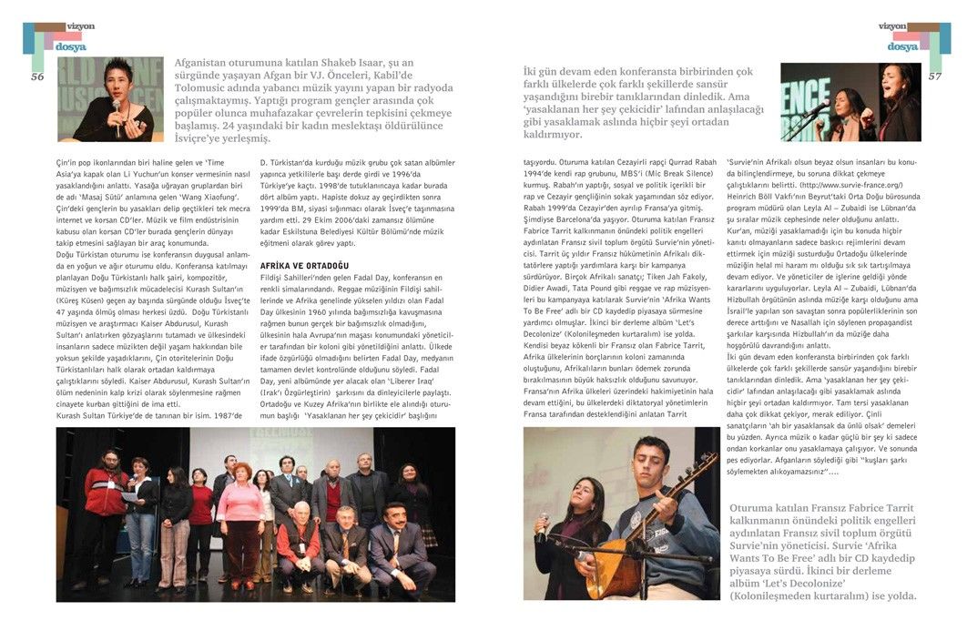 İki gün boyunca, konferansa ev sahipliği yapan Bilgi Üniversitesi Dolapdere Kampusu’nda şarkılı sözlü oturumlar düzenlendi. Afganistan, Beyaz Rusya, Çin, Fildişi Sahilleri, Zimbawve, Endonezya, Ortadoğu, Batı Afrika, Küba ve Türkiye’den müzisyenler, kendi deneyimlerini paylaşırken, akademisyenler de bu ülkelerde yaptıkları araştırmaları dinleyicilere aktardılar. Çok başarılı ve dinamik bir şekilde organize edilen konferans sansürün ne kadar kompleks ve çeşitli olabileceğini gösterirken diğer yandan ne olursa olsun müziği susturmanın pek kolay olmayacağını kanıtlar nitelikteydi. Özellikle de bu gibi konferanslarla güçlenen uluslararası dayanışma daha da yaygınlaştırılırsa…