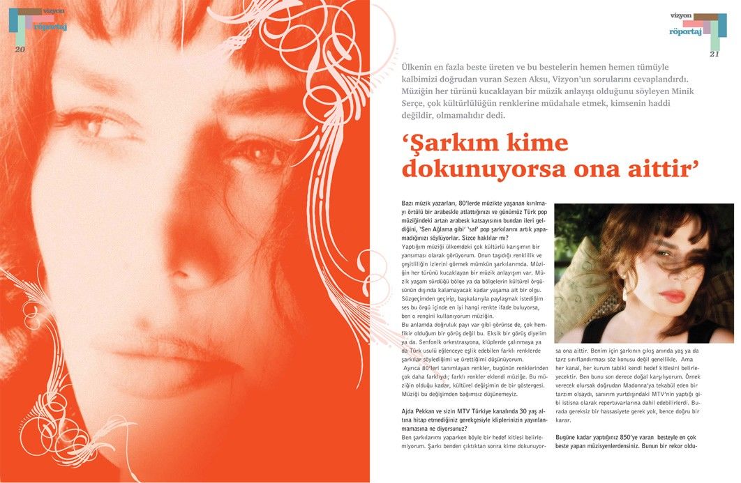 Sezen Aksu’yla yapılan bu söyleşi, Tetra İletişim tarafından, Türkiye Musiki Eseri Sahipleri Meslek Birliği (MESAM) için üretilen “Mesam Vizyon” dergisinin 4. sayısında (Nisan – Mayıs 2007) yer aldı. Esra Okutan tarafından gerçekleştirilen söyleşinin fotoğrafları Sezen Aksu’dan alındı. Sayfa tasarımı ve uygulaması Didem İncesağır tarafından yapıldı.