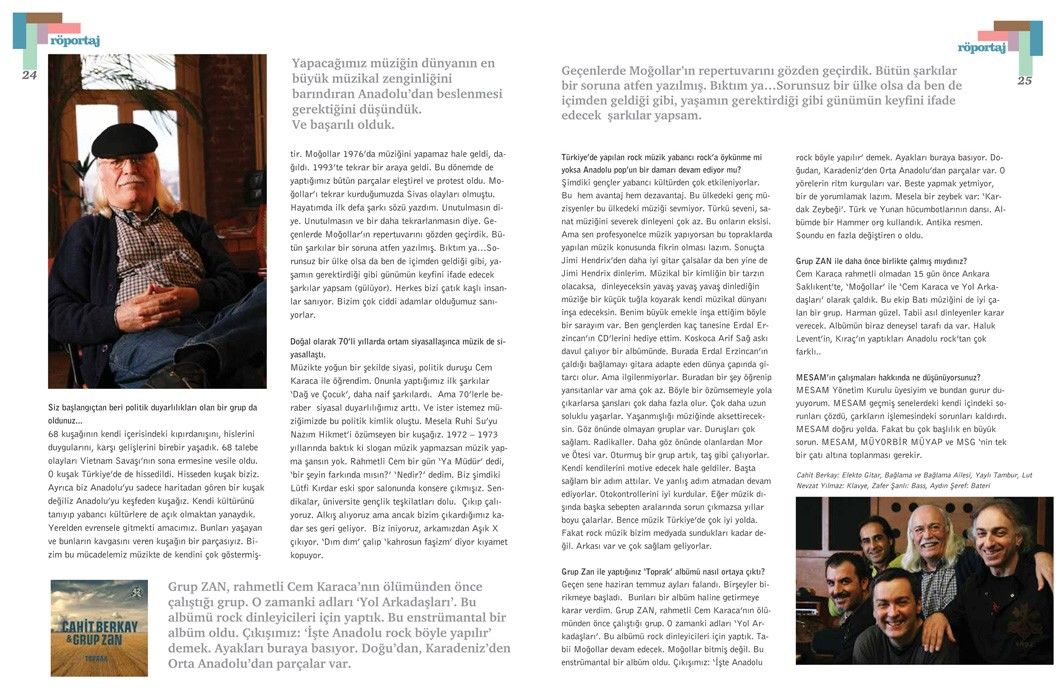 Cahit Berkay’la yapılan bu söyleşi, Tetra İletişim tarafından, Türkiye Musiki Eseri Sahipleri Meslek Birliği (MESAM) için üretilen “Mesam Vizyon” dergisinin 5. sayısında (Temmuz – Ağustos 2007) yer aldı. Esra Okutan ve Taner Koçak tarafından gerçekleştirilen röportajın fotoğraflarını Sinan Kesgin çekti. Sayfa tasarımı ve uygulaması Didem İncesağır’a ait.
