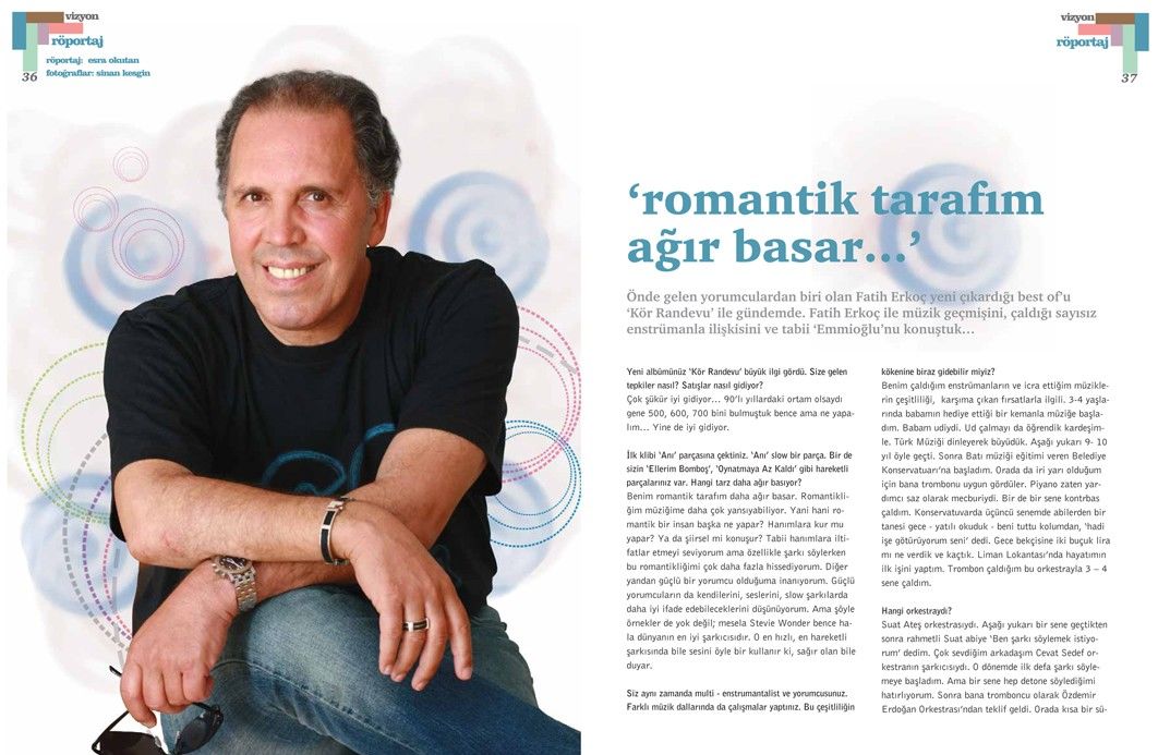 Fatih Erkoç’la yapılan bu söyleşi, Tetra İletişim tarafından, Türkiye Musiki Eseri Sahipleri Meslek Birliği (MESAM) için üretilen “Mesam Vizyon” dergisinin 5. sayısında (Temmuz – Ağustos 2007) yer aldı. Esra Okutan tarafından gerçekleştirilen röportajın fotoğraflarını Sinan Kesgin çekti. Sayfa tasarımı ve uygulaması Didem İncesağır’a ait.
