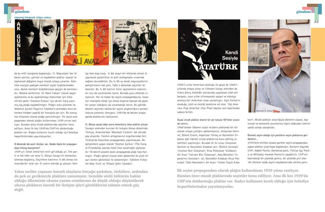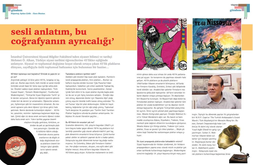 Siyaset bilimci ve tarihçi Mehmet Ö. Alkan’la yapılan bu söyleşi, Tetra İletişim tarafından, Türkiye Musiki Eseri Sahipleri Meslek Birliği (MESAM) için üretilen “Mesam Vizyon” dergisinin 5. sayısında (Temmuz – Ağustos 2007) yer aldı. Esra Okutan ve Aydan Çelik tarafından gerçekleştirilen röportajın fotoğraflarını Sinan Kesgin çekti. Nostaljik görüntüler ise Mehmet Ö. Alkan’ın arşivinden edinildi. Sayfa tasarımı ve uygulaması Didem İncesağır’a ait.