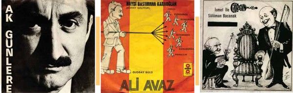 70’lerin başından itibaren pop müzikte popüler simaların siyasallaştığını görüyoruz. Şenay, Edip Akbayram, Ali Rıza Binboğa, Cem Karaca’nın bazı şarkılarının seçim meydanlarında ve parti merkezlerinde çalmaya başladığına tanık oluyoruz. Sanatçılar da taraf oluyor. 1974 Barış Harekâtı sonrasında bir yandan Yunan düşmanlığını teşvik eden aşırı milliyetçi üslupta birçok plak çıkarken öte yandan Yeşim (‘Aslan Mehmedim’, ‘Barış Dersi’), Nükhet Duru (Harp ve Sulh’), Füsun Önal (‘İsimsiz Kahramanlar’, ‘Biz barışçı Milletiz’), gibi sanatçılar barışa vurgu yapan plaklar çıkarmışlardır. 90’ların sonunda örneğin Çelik, Kenan Doğulu gibi isimlerin 28 Şubat sürecini dolaylı olumlayan çalışmalar yaptığını görüyoruz. Kısaca ortam siyasallaştığı zaman sanatçılar da siyasallaşır…