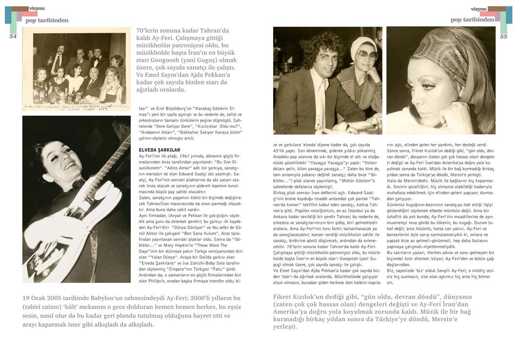 Sonra sonra, Fikret Kızılok’un dediği gibi, “gün oldu, devran döndü”, dünyanın (zaten çok çok hassas olan) dengeleri değişti ve Ay-Feri Iran’dan Amerika’ya doğru yola koyulmak zorunda kaldı. Müzik ile bir bağ kurmadığı birkaç yıldan sonra da Türkiye’ye döndü, Mersin’e yerleşti.