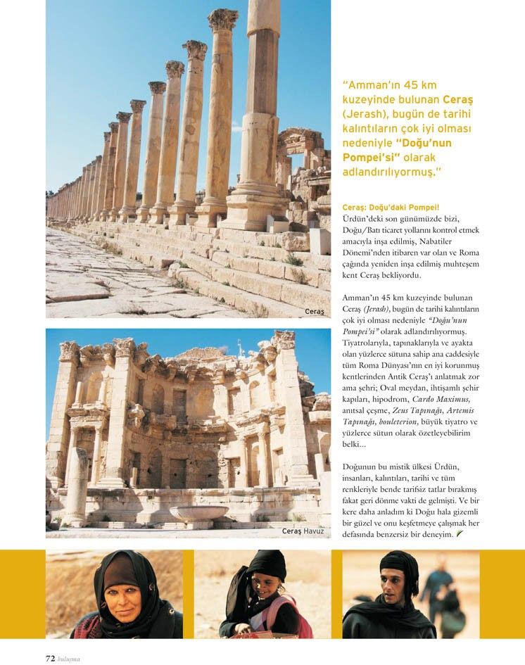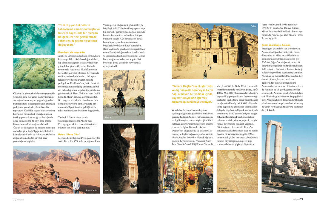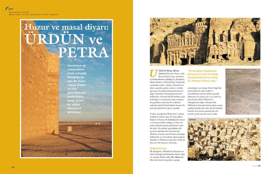 Ürdün ve Petra üzerine kaleme alınan bu yazı, Tetra İletişim tarafından, Sağlık ve Eğitim Vakfı (SEV) için üretilen “Buluşma” dergisinin 1. sayısında (Mayıs 2009) yer aldı. Esra Sunar tarafından kaleme alınan yazının fotoğrafları Esra Sunar, Dolunay Özbek ve Osman Erk’e ait. Sayfa tasarımı ve uygulaması Nur Ayman Çakmak tarafından yapıldı.