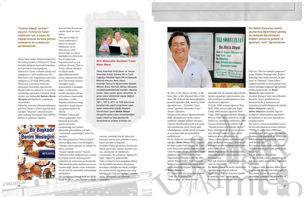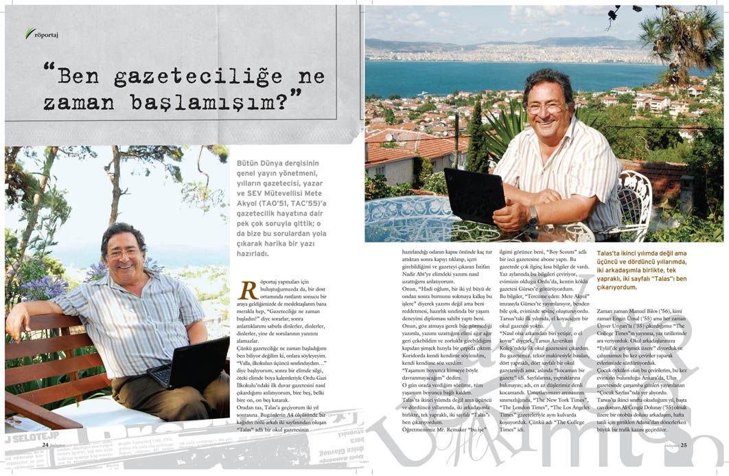 Usta gazeteci Mete Akyol’un sorduğumuz sorular üzerine kaleme aldığı bu yazı, Tetra İletişim tarafından, Sağlık ve Eğitim Vakfı (SEV) için üretilen “Buluşma” dergisinin 2. sayısında (Eylül 2009) yer aldı. Mete Akyol’un fotoğraflarını Yüksel Altıntop çekti. Sayfa tasarımı ve uygulaması Nur Ayman Çakmak ve Orçun Peköz tarafından yapıldı.