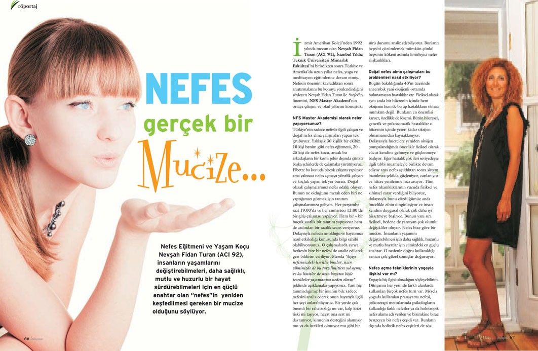 İzmir Amerikan Koleji’nden 1992 yılında mezun olan Nevşah Fidan Turan (ACI ’92), İstanbul Yıldız Teknik Üniversitesi Mimarlık Fakültesi’ni bitirdikten sonra Türkiye ve Amerika’da uzun yıllar nefes, yoga ve meditasyon eğitimlerine devam etmiş. Nefesin önemini kavradıktan sonra araştırmalarını bu konuya yönlendirdiğini söyleyen Nevşah Fidan Turan ile “nefes”in önemini, NFS Master Akademi’nin ortaya çıkışını ve okul yıllarını konuştuk.