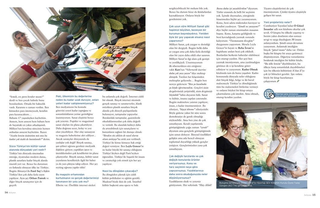 Zeynep Oral’la yapılan bu söyleşi, Tetra İletişim tarafından, Sağlık ve Eğitim Vakfı (SEV) için üretilen “Buluşma” dergisinin 7. sayısında (Ocak 2011) yer aldı. Tülay Güngen tarafından gerçekleştirilen söyleşinin fotoğraflarını Cihan Aldık çekti. Sayfa tasarımı ve uygulaması Erdem Özkan tarafından yapıldı.