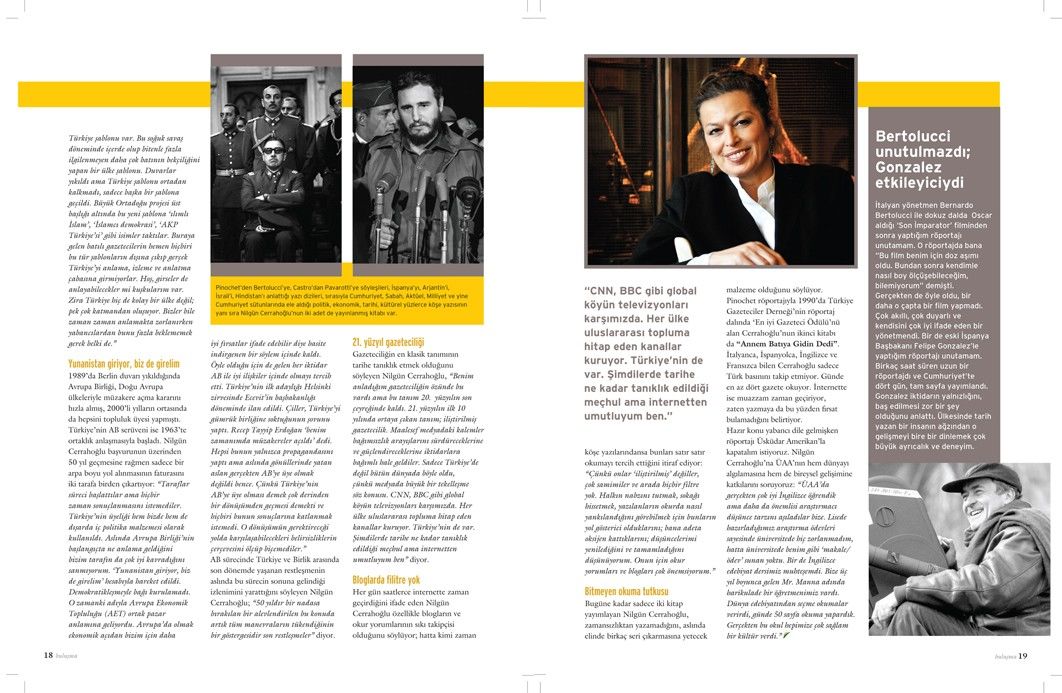 Olayları yerinde görmenin ve takip etmenin insana bambaşka ufuklar açtığını söyleyen Nilgün Cerrahoğlu, “İçinde yaşıyor olmak çok boyutlu bakışı da beraberinde getiriyor. Ancak burada şablonlar işin içine giriyor. Mesela batının kafasında yerleşmiş bir Türkiye şablonu var. Bu soğuk savaş döneminde içerde olup bitenle fazla ilgilenmeyen daha çok batının bekçiliğini yapan bir ülke şablonu. Duvarlar yıkıldı ama Türkiye şablonu ortadan kalkmadı, sadece başka bir şablona geçildi. Büyük Ortadoğu projesi üst başlığı altında bu yeni şablona ‘ılımlı İslam’, ‘İslamcı demokrasi’, ‘AKP Türkiye’si’ gibi isimler taktılar. Buraya gelen batılı gazetecilerin hemen hiçbiri bu tür şablonların dışına çıkıp gerçek Türkiye’yi anlama, izleme ve anlatma çabasına girmiyorlar. Hoş, girseler de anlayabilecekler mi kuşkularım var. Zira Türkiye hiç de kolay bir ülke değil; pek çok katmandan oluşuyor. Bizler bile zaman zaman anlamakta zorlanırken yabancılardan bunu fazla beklememek gerek belki de.”
