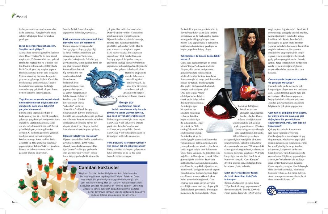 Aslında kısa zamanda güzel bir ilerleme oldu. Önce Türkiye’de iki tane kişisel sergi yaptım. Daha sonra bir cam galerisi tarafından keşfedildim ve o benim için bir dönüm noktası oldu. 2008 yılında Berlin’de ilk yurt dışı sergimi yaptım. Hemen akabinde Berlin’deki Bergama Müzesi dokuz ay boyunca benim üç parçamı sergilemeye başladı. Orada bir koleksiyoncu camlarımı aldı. Yabancı basında isminiz çıkmaya başladığı zaman her şey çok farklı oluyor. İnsan hemen farklı bir skalaya giriyor.