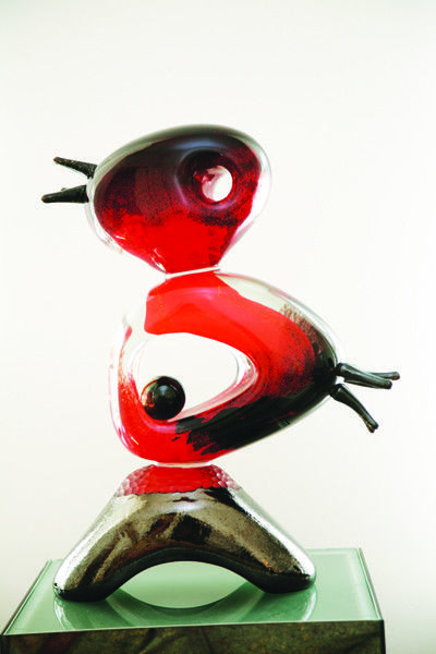 Evet, bizim birlikte çalışıp buluştuğumuz bir grubumuz var. Bu imkanı sağlayan yine Cam Ocağı Vakfı. Hepimizin ayrı kulvarları var ama bizim yaptığımız işe studio glass deniyor, studio glass işi yapan 10-15 kişiyiz. Beraber çeşitli hareketlere katılıyoruz. Mesela yıllardır bazı müzelere birlikte davet edildik; Cam Müzesi’ne birlikte davet edildik, Paşabahçe’yle birlikte eserlerimizi sergiledik… Şimdi yine Kuzey Avrupa’dan sanatçılar gelecek ve biz de onları misafir edeceğiz. Tamamı ile fahri olarak çalışan Cam Ocağı Vakfı’nın şemsiyesi altında, onun imkanlarıyla toplanıyoruz, bazı kararlar alıyoruz ve birbirimize yardımcı oluyoruz.