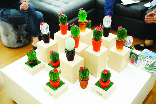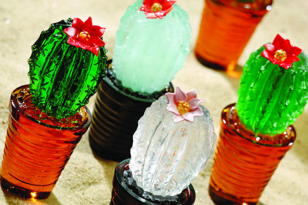 “Heykelsi formları ile beni büyüleyen kaktüsleri cam ile bir araya getirmek hep hayalimdi” diyen Felekşan Onar meşakkatli bir işe girmiş ve ortaya birbirinden göz alıcı cam kaktüsler çıkmış. Her biri için ayrı kalıplar hazırlanan kaktüsler 50 adet hesaplanarak “limited edition” üretilmiş ancak 45 tanesi süreçten sağlam çıkabilmiş. Sanatçı, kendi deyimiyle camdan yaptığı kaktüslerle bu asil ve iddiasız bitkiye sonsuza dek hayat vermiş.