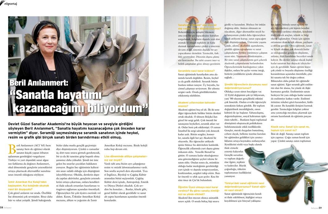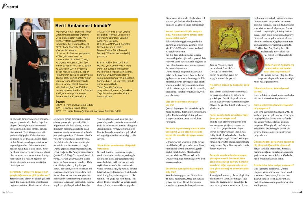 Beril Anılanmert’le yapılan bu söyleşi, Tetra İletişim tarafından, Sağlık ve Eğitim Vakfı (SEV) için üretilen “Buluşma” dergisinin 10. sayısında (Ekim 2011) yer aldı. Önder Kızılkaya ve Gamze Arslan tarafından gerçekleştirilen söyleşinin fotoğraflarını Cihan Aldık çekti. Sayfa tasarımı ve uygulaması Kübra Şahin tarafından yapıldı.