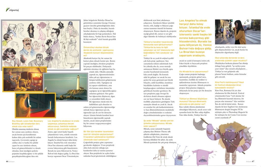 Kino Fest, Romanya’da yer alan uluslararası bir film festivali. Festival yönetmenleri bana “web sitesine bir kaç illüstratör koymak istiyoruz, bir parçası olur musunuz” diye sordular. Ben de tabi ki kabul ettim. Bunun dışında iki kere İngiltere’nin uluslar arası illüstrasyon dergisi Imagine FX’de söyleşim çıktı ve Photoshop Magazin’de bir söyleşim bir de Comic Con üzerine yazım yayınlandı.