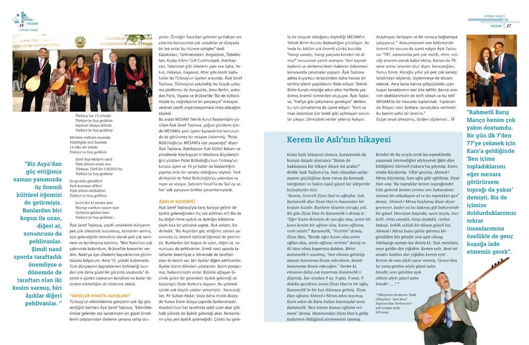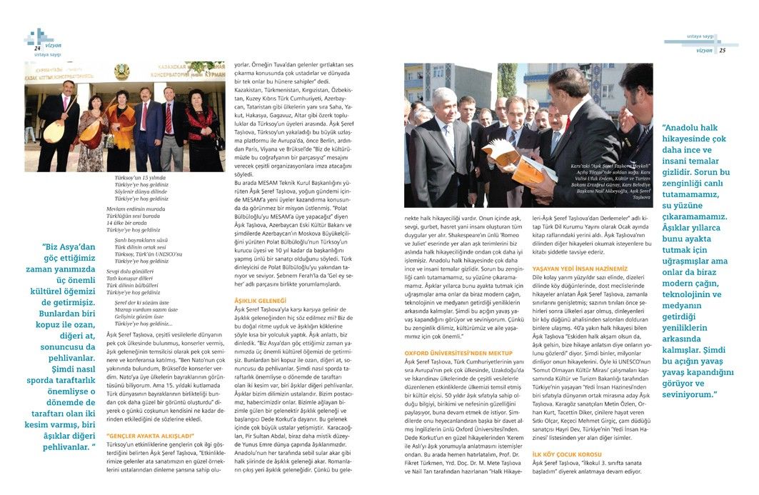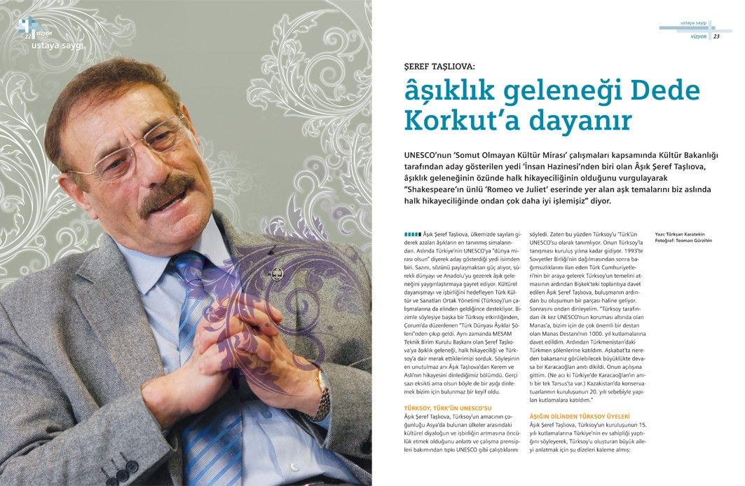 Aşık Şeref Taşlıova’yla yapılan bu söyleşi, Tetra İletişim tarafından, Türkiye Musiki Eseri Sahipleri Meslek Birliği (MESAM) için üretilen “Mesam Vizyon” dergisinin 12. sayısında (Nisan – Mayıs 2009) yer aldı. Türkşan Karatekin tarafından gerçekleştirilen söyleşinin fotoğraflarını Sinan Kesgin çekti. Sayfa tasarımı ve uygulaması Didem İncesağır ve Orçun Peköz tarafından yapıldı.