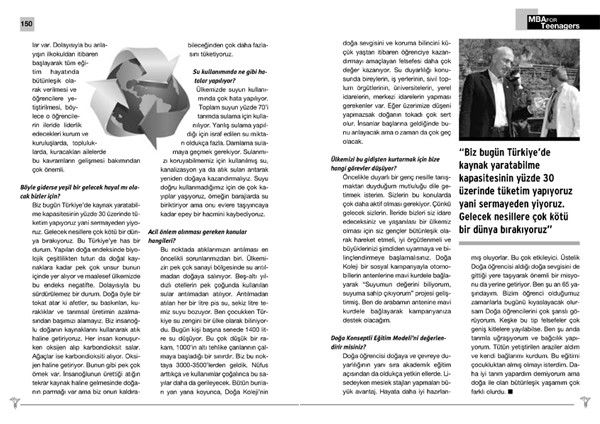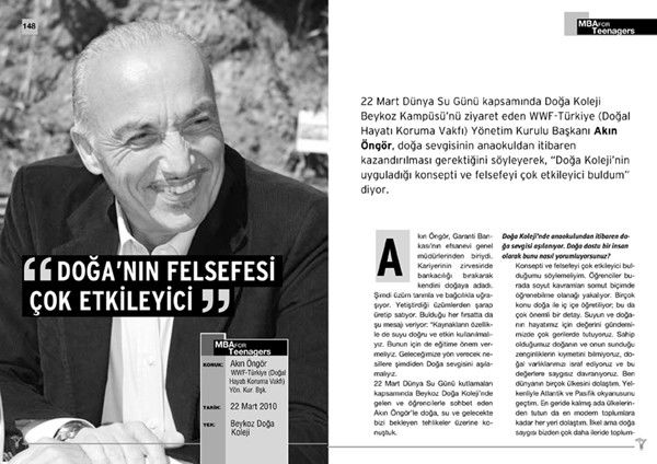 Doğa Koleji’nde uygulanan t-MBA Modeli, öğrencileri geleceğe hazırlıyor. Bu çerçevede öğrenciler, mesleklerinde başarıya ulaşmış insanlarla bir araya gelip söyleşiyor. Bu toplantı ve buluşmalar, Tetra İletişim tarafından izlenip kayıt altına alınıyor. Yıl sonunda tüm konular, bir kitapta toplanıyor. Akın Öngör’le Doğa öğrencilerinin buluşması 2009 -2010 eğitim döneminde gerçekleşti. Buluşma, Türkşan Karatekin tarafından izlendi ve Cihan Aldık tarafından fotoğraflandı. Konunun ve kitabın editörlüğünü Türkşan Karatekin yaptı. Kitap tasarımı ve uygulaması ise Didem İncesağır’a ait.