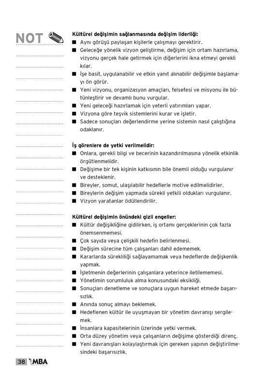 Oysa çalışanları bilgiyle donatmak kadar güvenle donatmak, bunun için de işletme içi “birlikte çalışabilme” ortamını yaratmak, takım çalışmasını hiyerarşiden bağımsız bir yaşam tarzı haline getirmek “değişim kültürü” için olmazsa olmaz koşullardır. Ancak bu sayede “çalışanların toplamından daha büyük bir değer” var etmek mümkün olabilir.