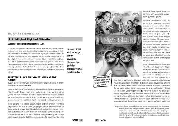 Doğa Koleji’nde uygulanan t-MBA Modeli, öğrencileri geleceğe hazırlıyor. Tetra İletişim, bu model için müfredat kitapları hazırladı. Burada yer verdiğimiz “Müşteri İlişkileri Yönetimi (CRM)” adlı konu, “Değişim Mühendisliği ve Pazarlama” (ISBN: 978-605-4101-23-8) adlı kitabın 95. sayfasında yer alıyor. Ersin Toker tarafından kaleme alınan kitabın tasarım ve grafik uygulamasını Didem İncesağır yaptı. Kitaptaki çizimler Ender Özkahraman ve Behzat Taş’a ait.